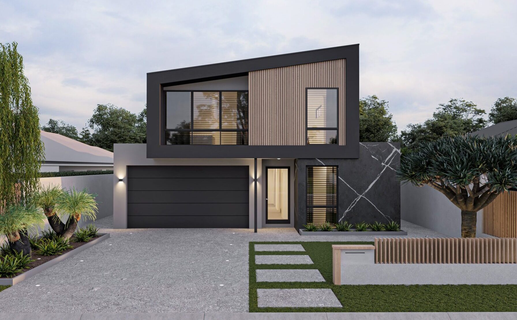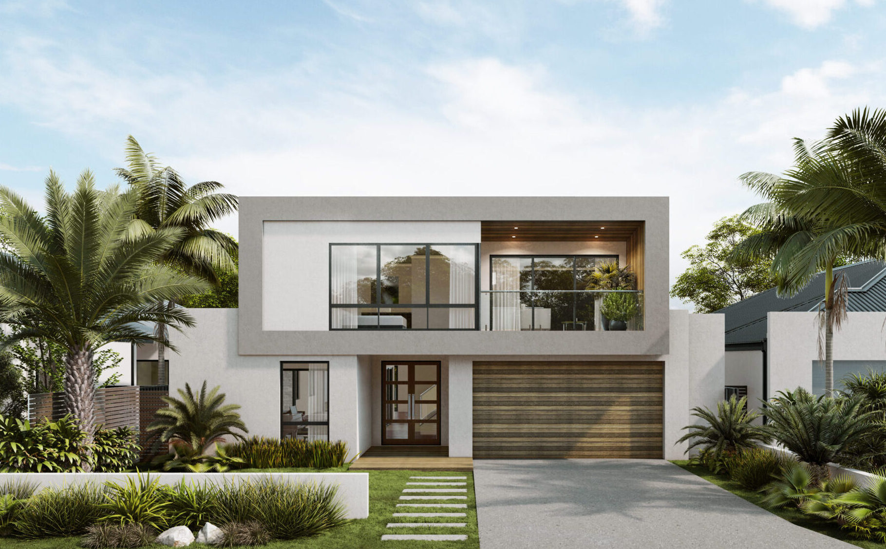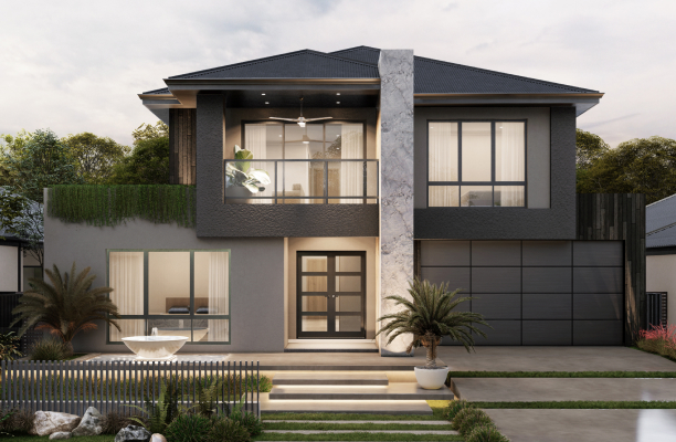 4 x 2 + Parents Retreat + Balcony + studio Large 300sqm family home Unique internal courtyard lets natural light stream through the home Garage shoppers entry with mud room Architectural Elevation
