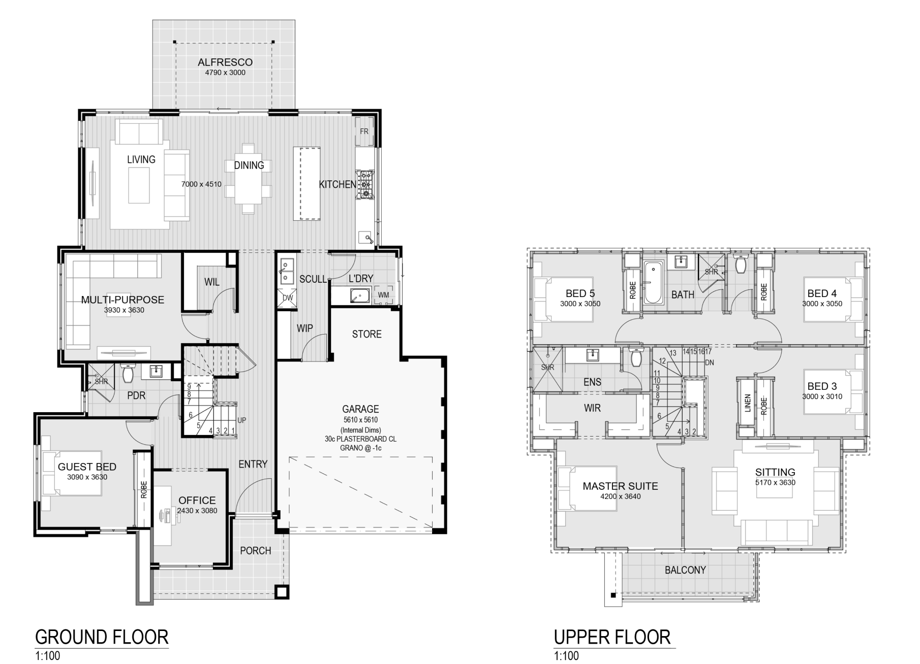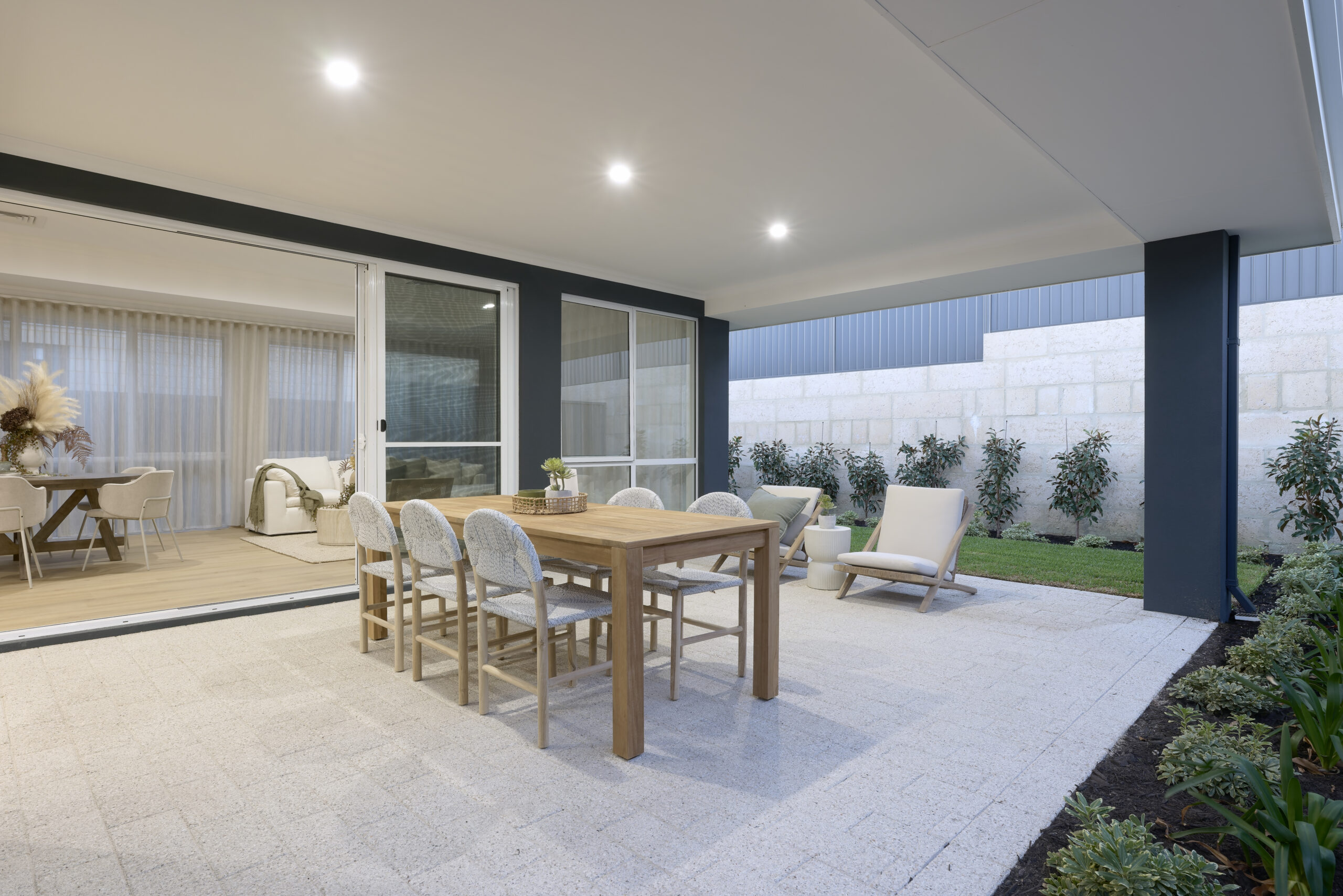 Towards the rear of the home, space unfolds with the kitchen, scullery, living, and dining areas merging effortlessly with the alfresco, creating the epitome of indoor-outdoor living. The scullery leads to a walk-in pantry, conveniently connecting to the garage – which includes extra storage space, ensuring a hassle-free journey for your groceries without passing through the entire house.